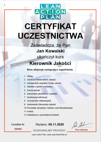 – Kurs Kierownik Jakości – ukaże Ci jak połączyć instrumenty jakości z działaniami prosto w gemba.