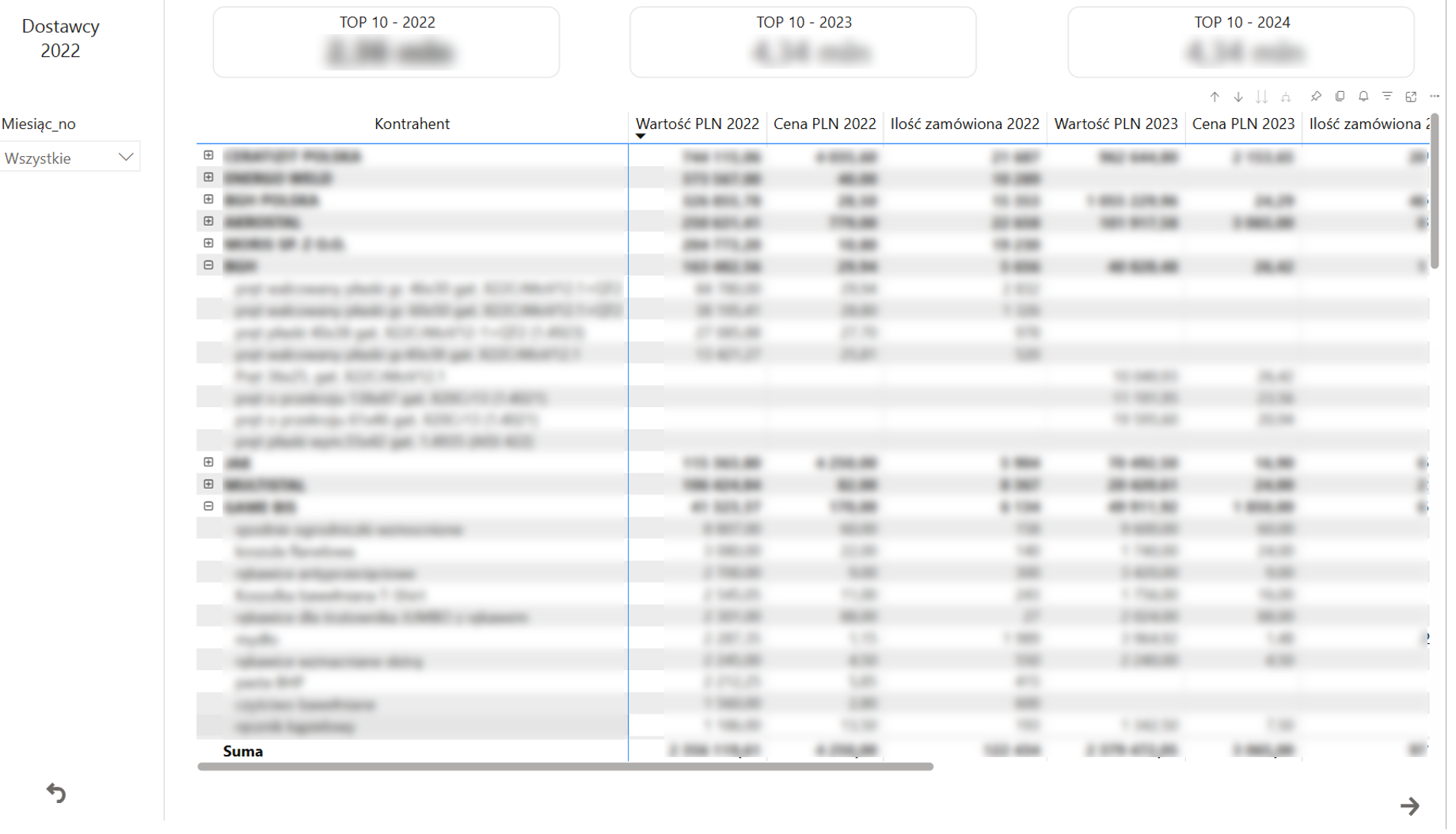 - Szczegółowe porównanie kosztów zakupów od różnych dostawców