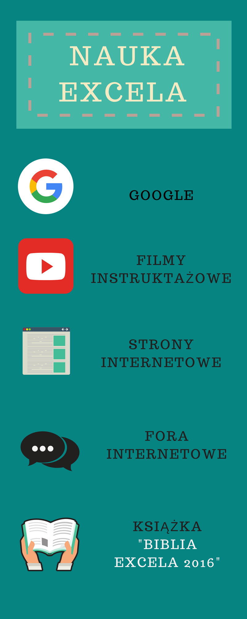 Korzystaj z pomocy Wujka – Google’a – wiem, że brzmi to bardzo banalnie, ale nie mogłem pominąć tego tematu. Jeżeli masz jakiś problem, którego nie możesz rozwiązać, Internet prawdopodobnie zna odpowiedź. Strony internetowe, grupy na portalach społecznościowych, kanały na YouTube. Wiedzę na temat Excela możesz znaleźć w setkach miejsc w sieci. Wystarczy po nie po prostu sięgnąć.