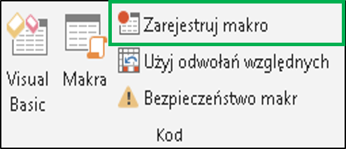 - Z karty Deweloper wybierz polecenie Zarejestruj makro
