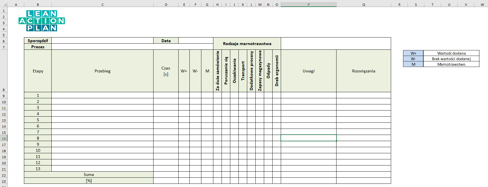 Te czynności powinny być eliminowane w pierwszej kolejności. Aby umożliwić ich usunięcie, należy potrafić je dostrzec oraz znaleźć ich przyczynę źródłową. W tym celu konieczne jest mapowanie strumienia wartości (więcej tutaj: https://leanactionplan.studionext.digital/mapowanie/)