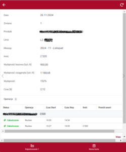 • Etap I – Aplikacja do monitorowania czasu pracy linii produkcyjnych W odpowiedzi na potrzeby firmy opracowano aplikację do monitorowania wydajności linii produkcyjnej: