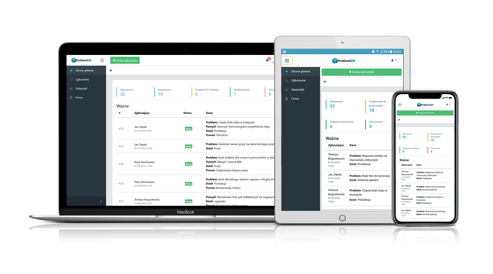 - W jaki sposób mogę zgłosić pomysł? (Dedykowany system? Zgłoszenia papierowe? ProblemBox?)