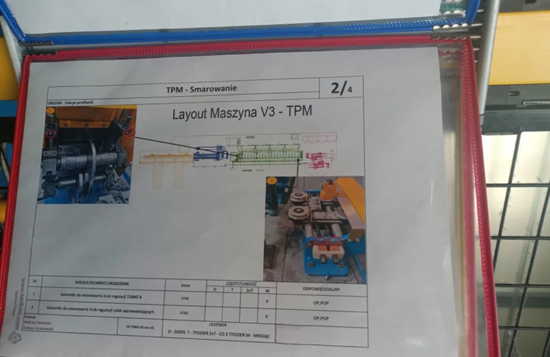| Założenia | Wdrożenie TPM – obsługa autonomiczna celem zapewnienia jak najniższej awaryjności maszyn, a tym samym zwiększenia ich dostępności do realizacji produkcji. |