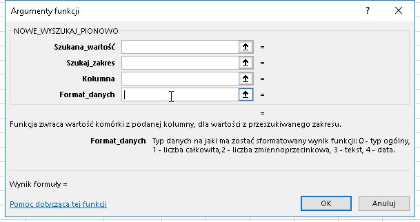 Format_danych – argument opcjonalny. Umożliwi nam dodanie mechanizmu zmiany formatu danych zwracanych przez funkcję.