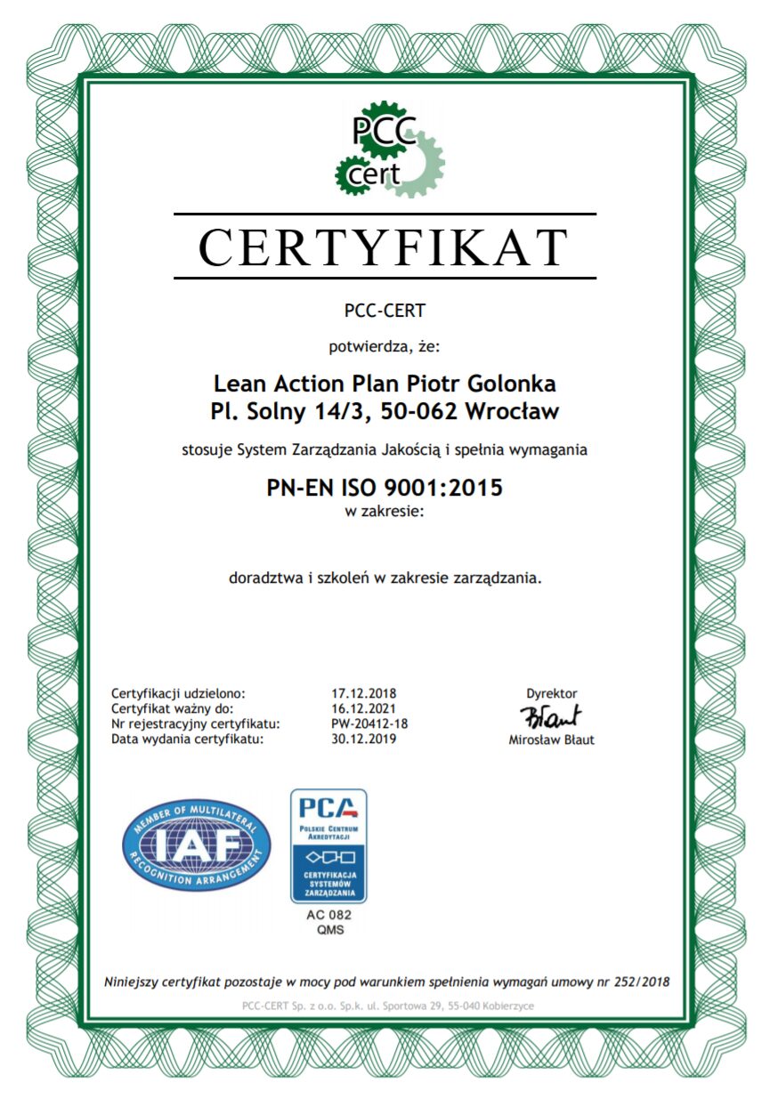 Stawiamy na odpowiedzialność za realizację szkolenia i jego efektów. Metody szkoleniowe mamy potwierdzone przez Polską Izbę Firm Szkoleniowych i Certyfikację ISO 9001